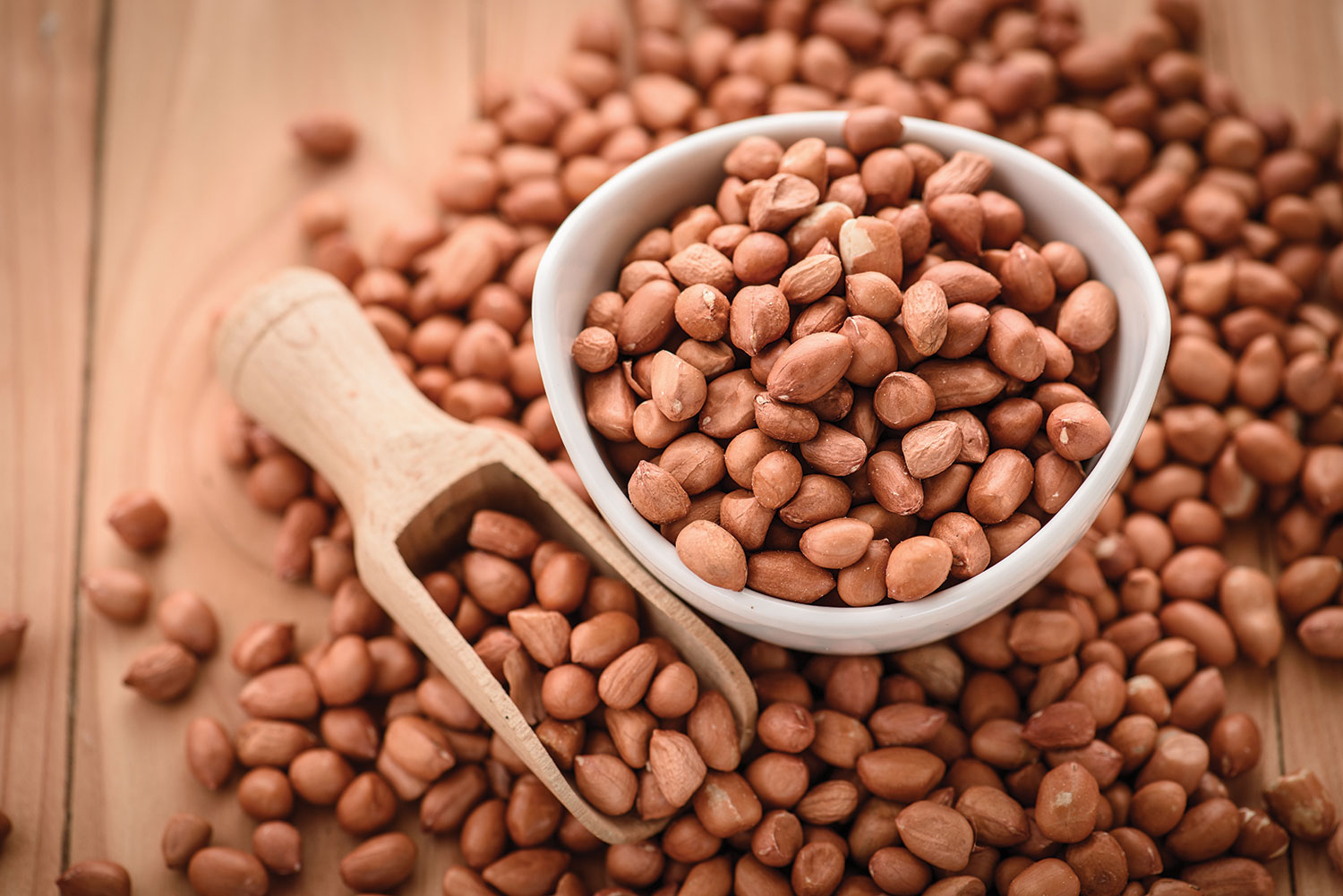 Amendoim descascado, cru com pele, selecionados eletronicamente e por seleção manual, classificados por tamanhos: